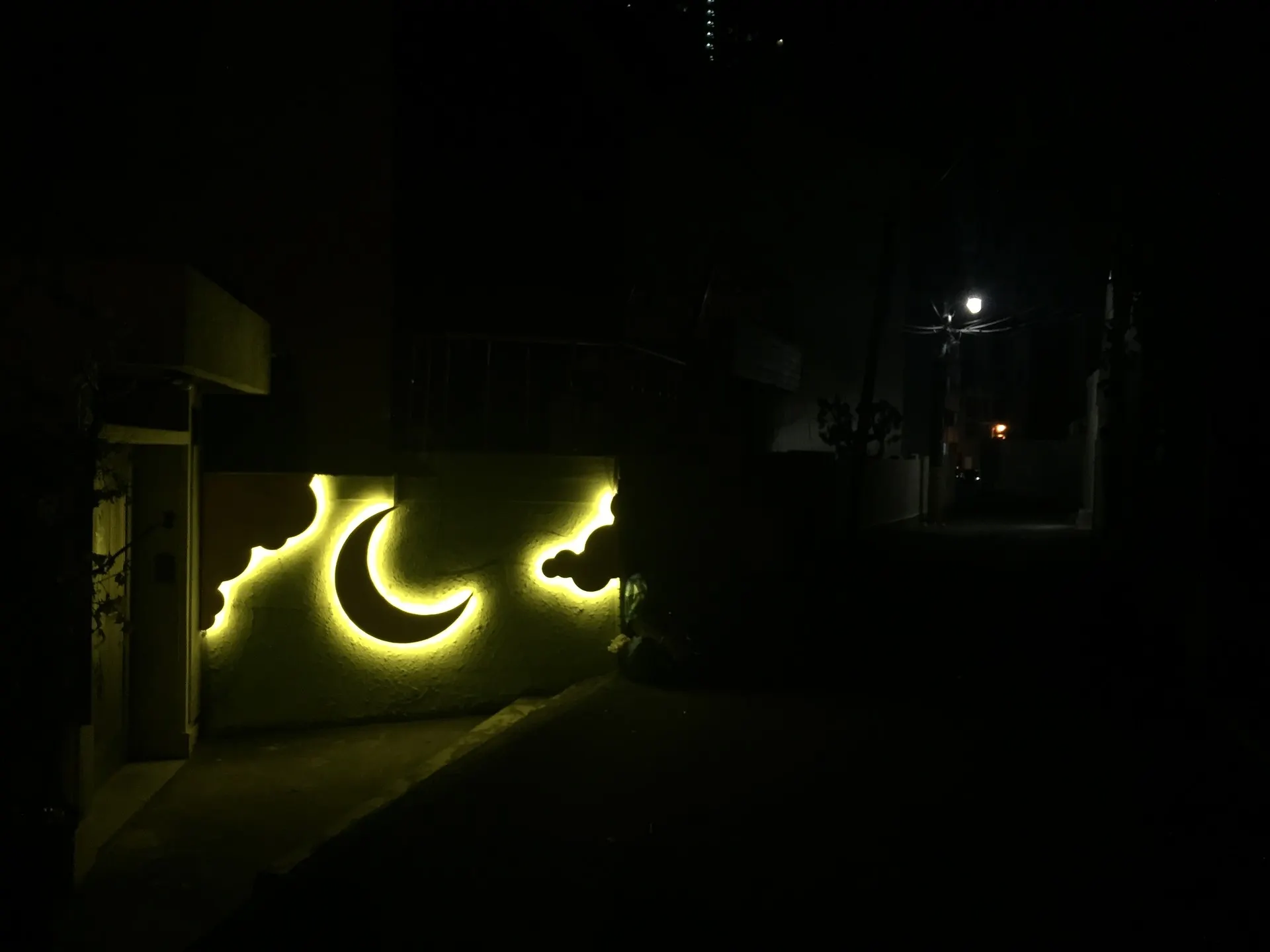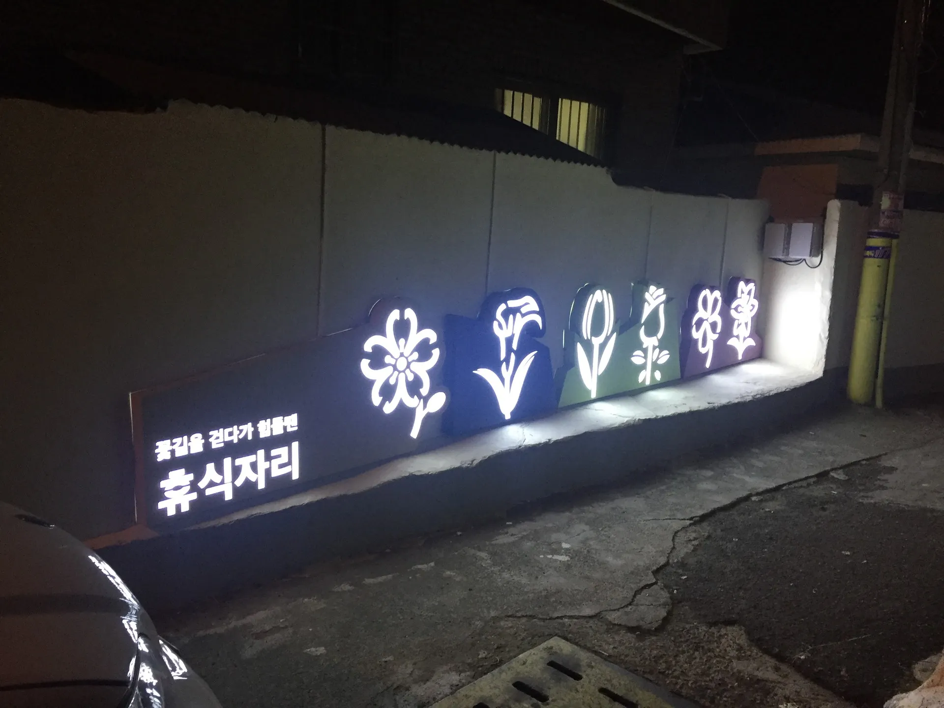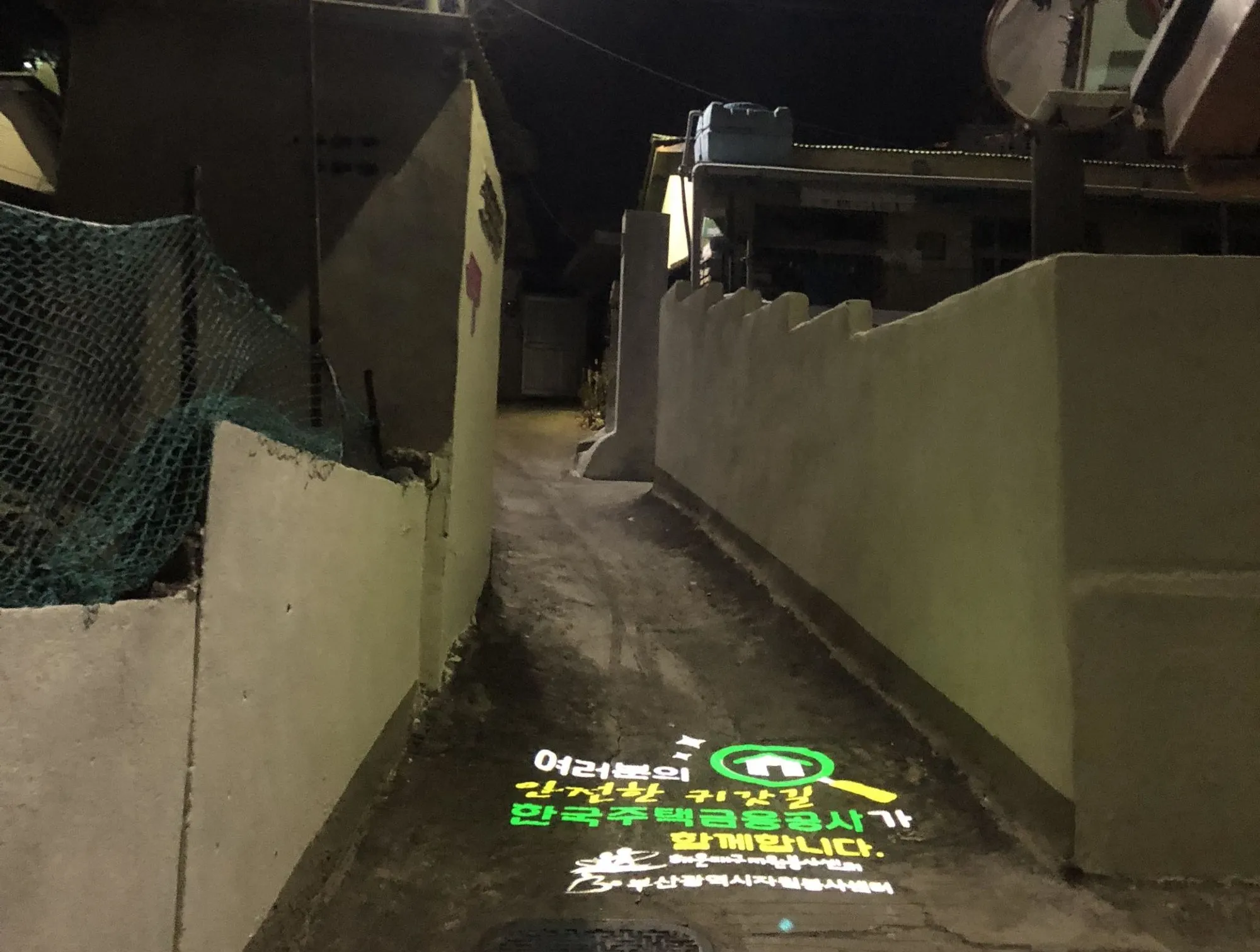 마을 주민들과 몇 개월간의 협의를 거쳐 기존 벽에 도장작업을 진행, 이후 함께 ‘별빛이 빛나는 마을’ 빛 조형물을 설치.