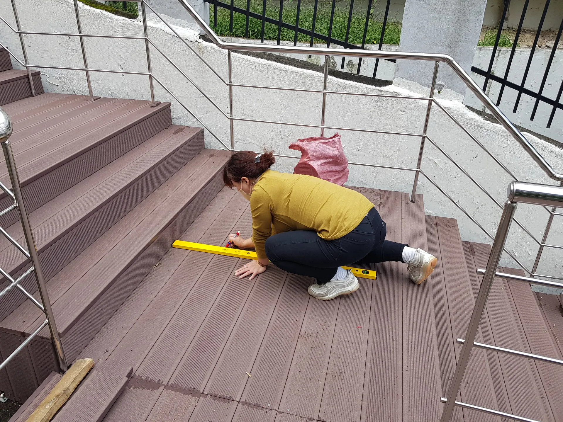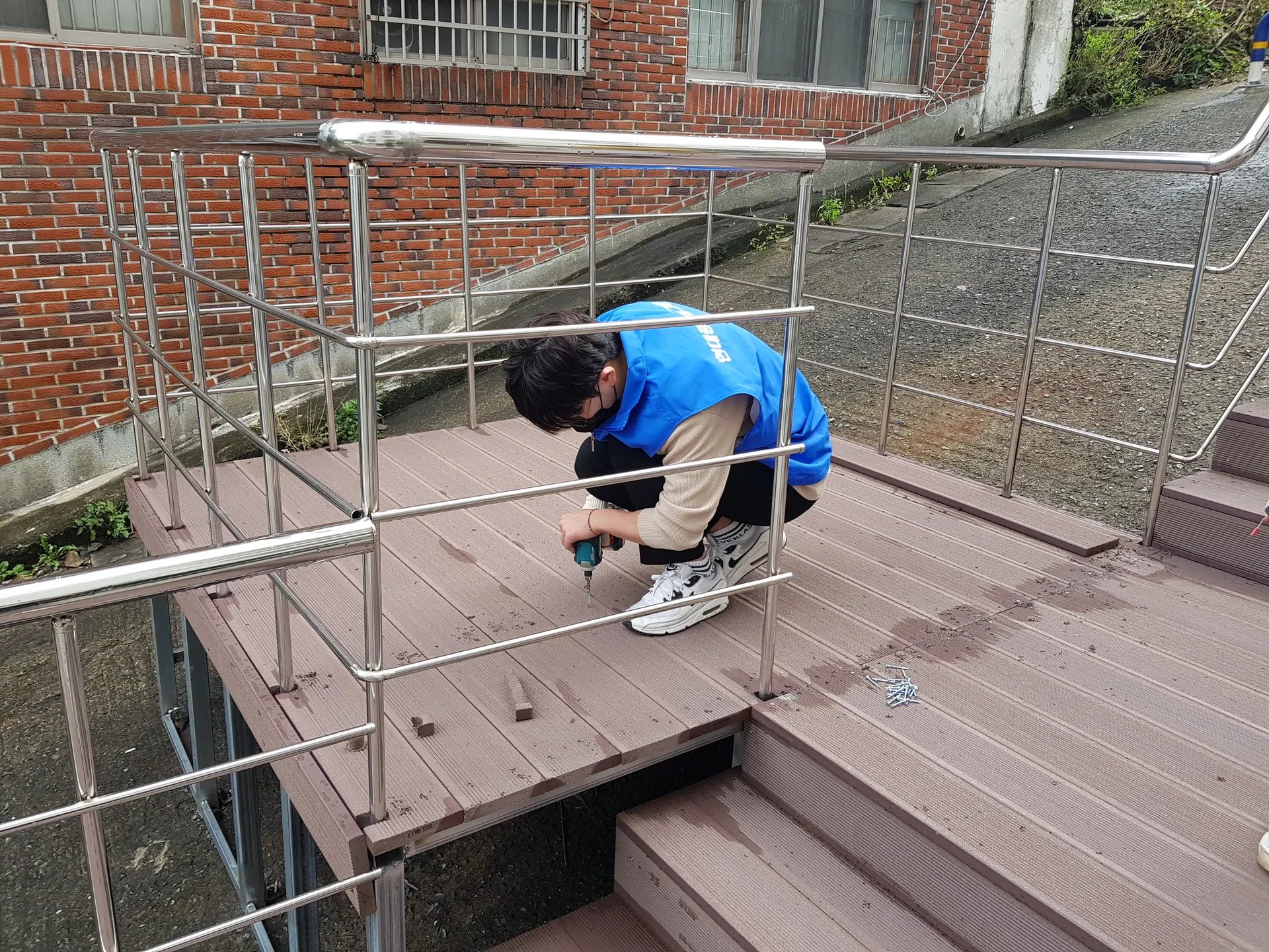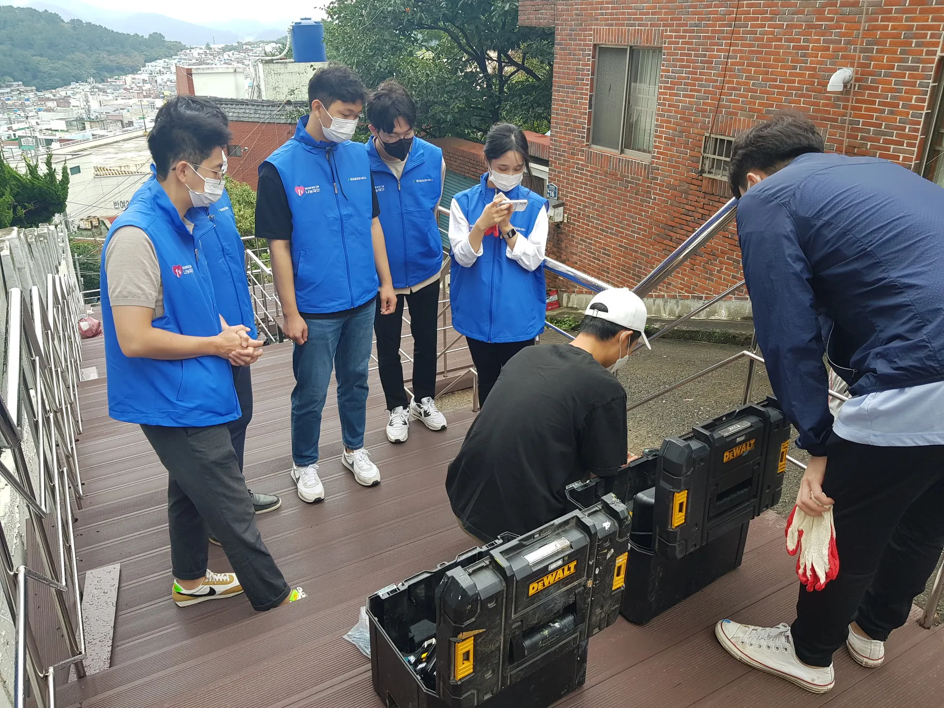 합성데크 상판 부착은 현대글로벌서비스 임직원과 함께 진행.