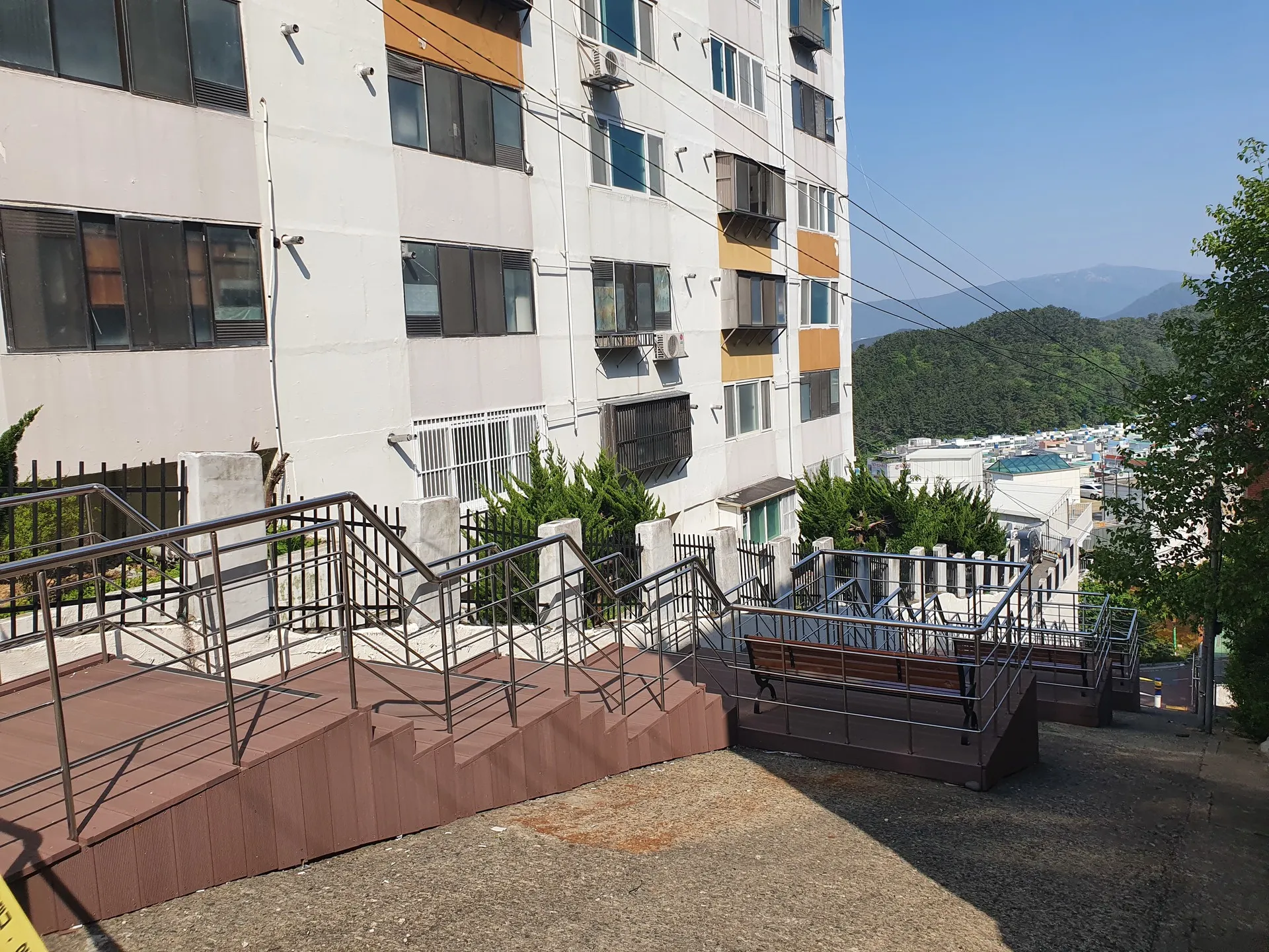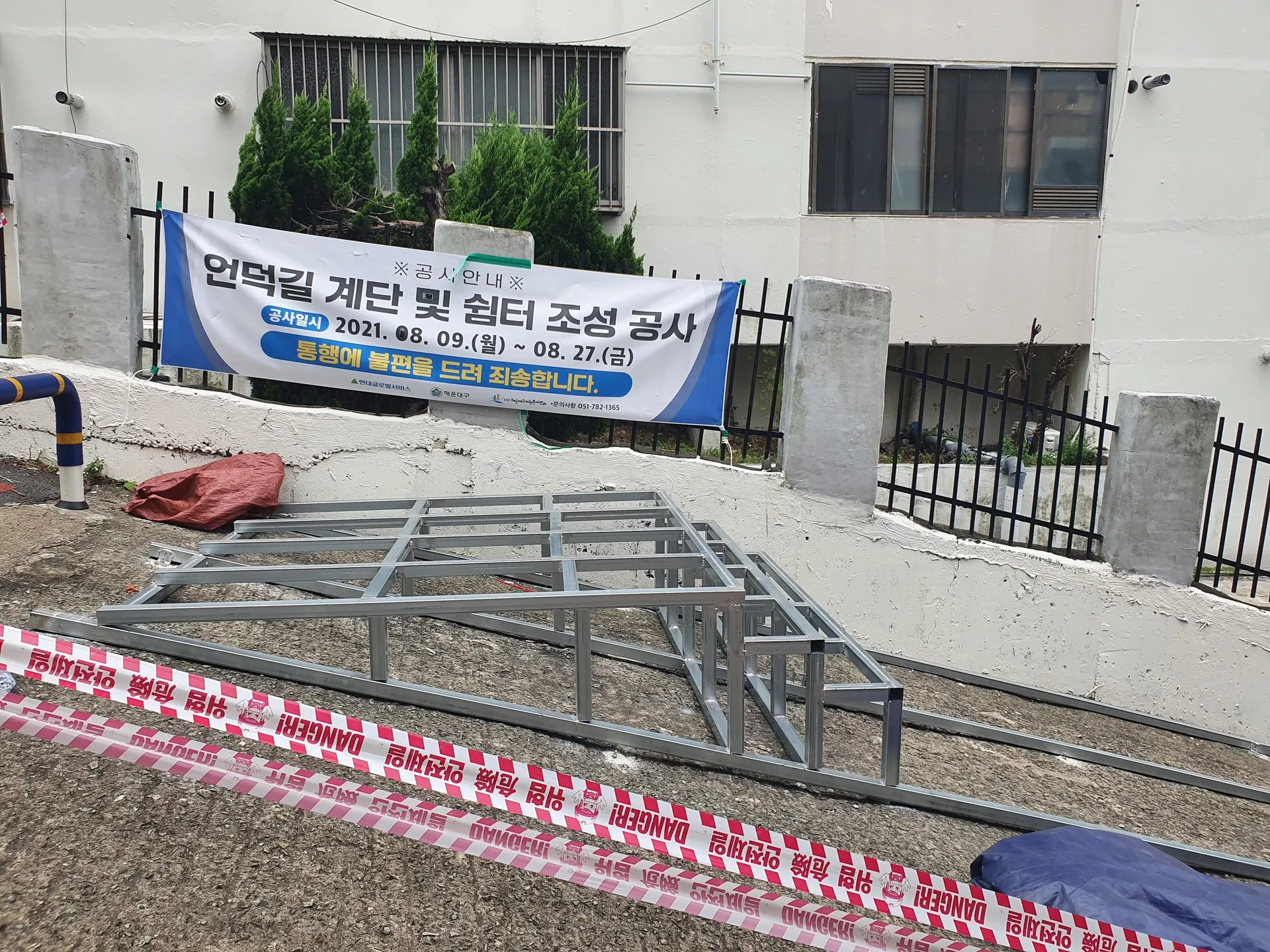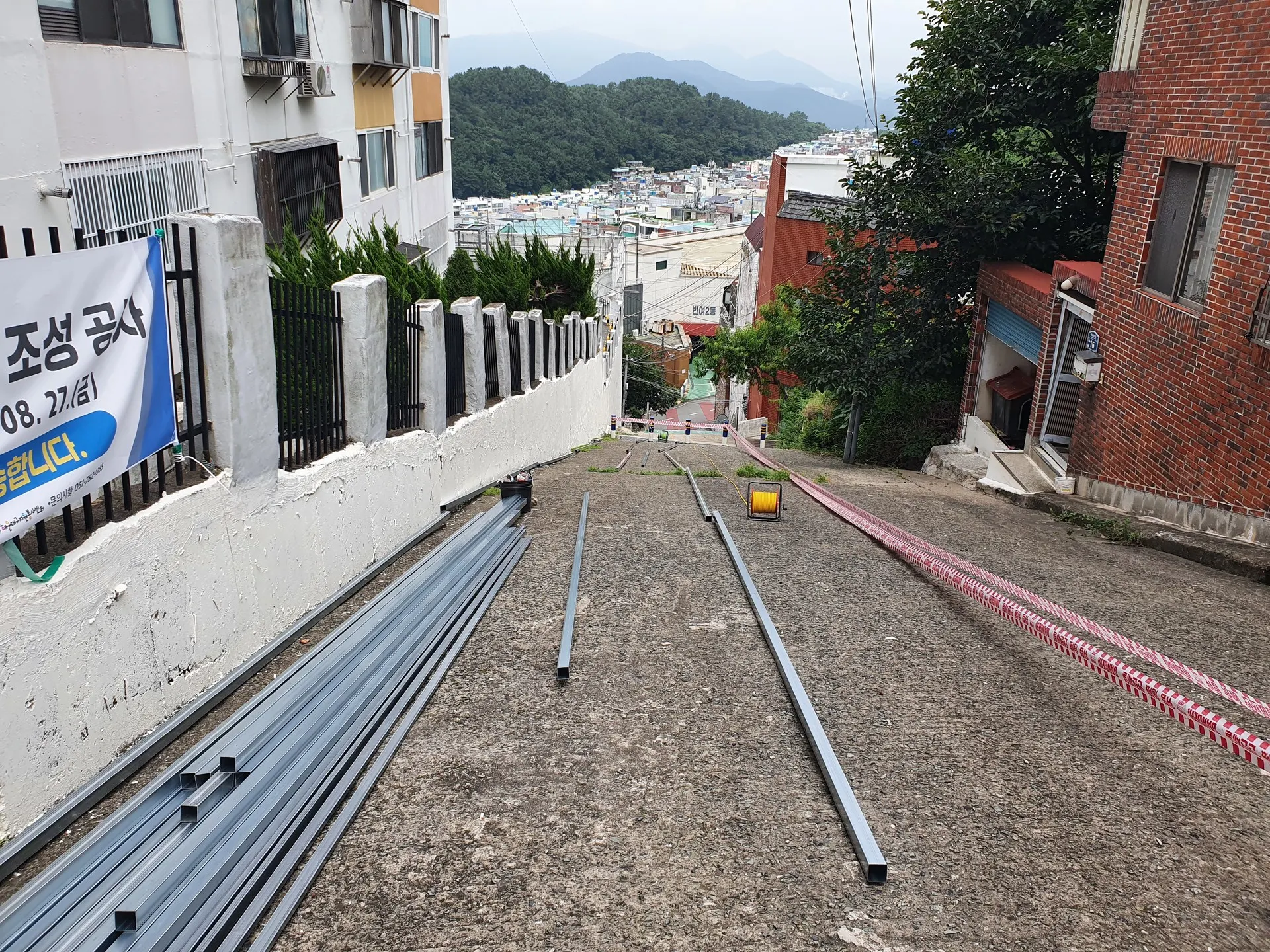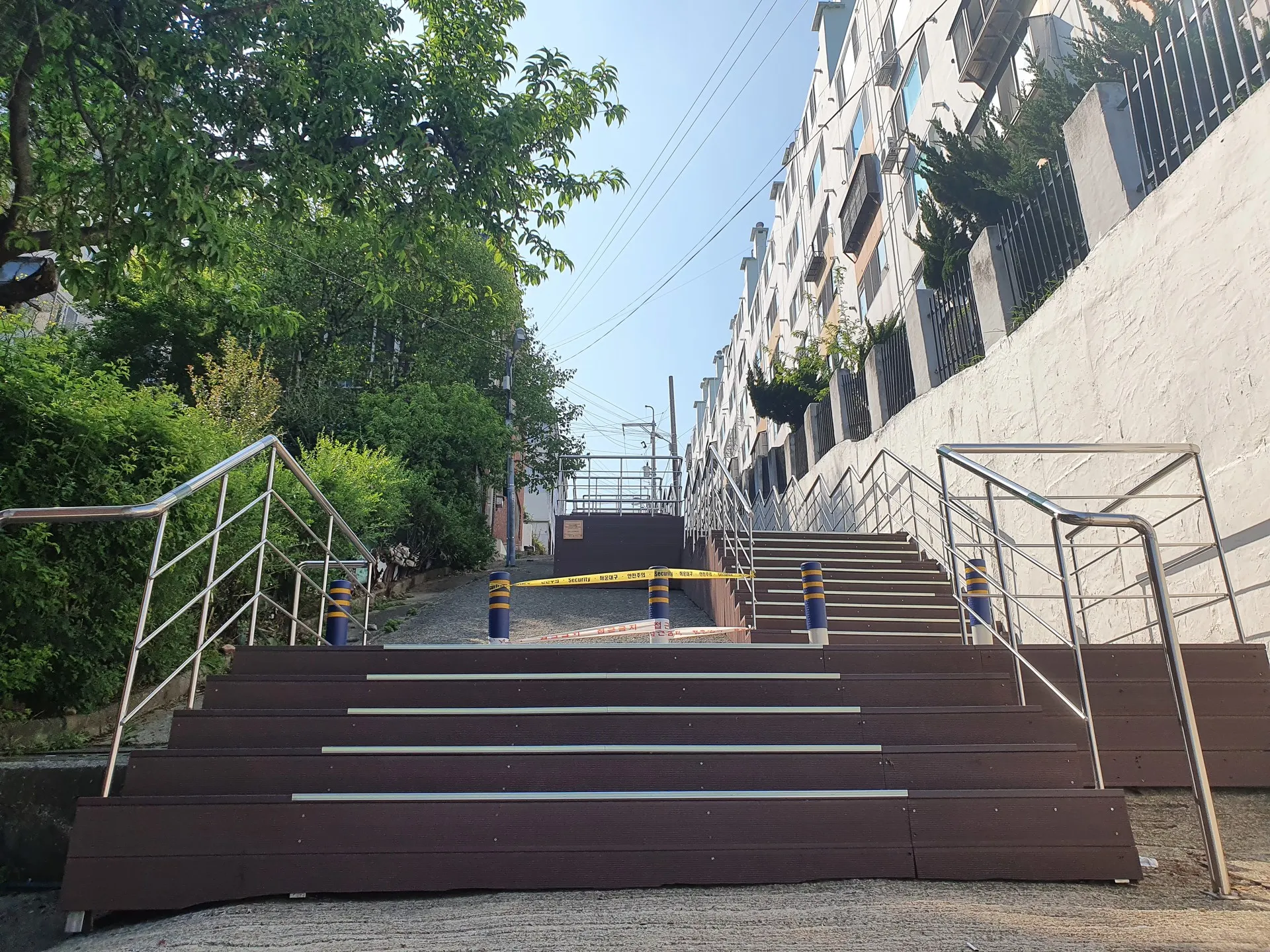 오르막길이 많아 우천 시 미끄러워 위험성이 높은 재송동 오르막길에 약 35m의 계단 쉼터를 설치.