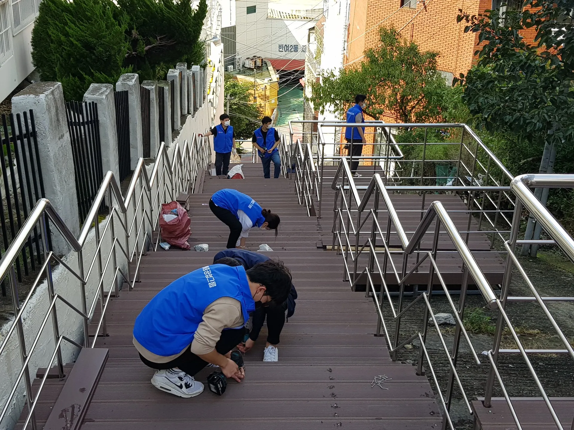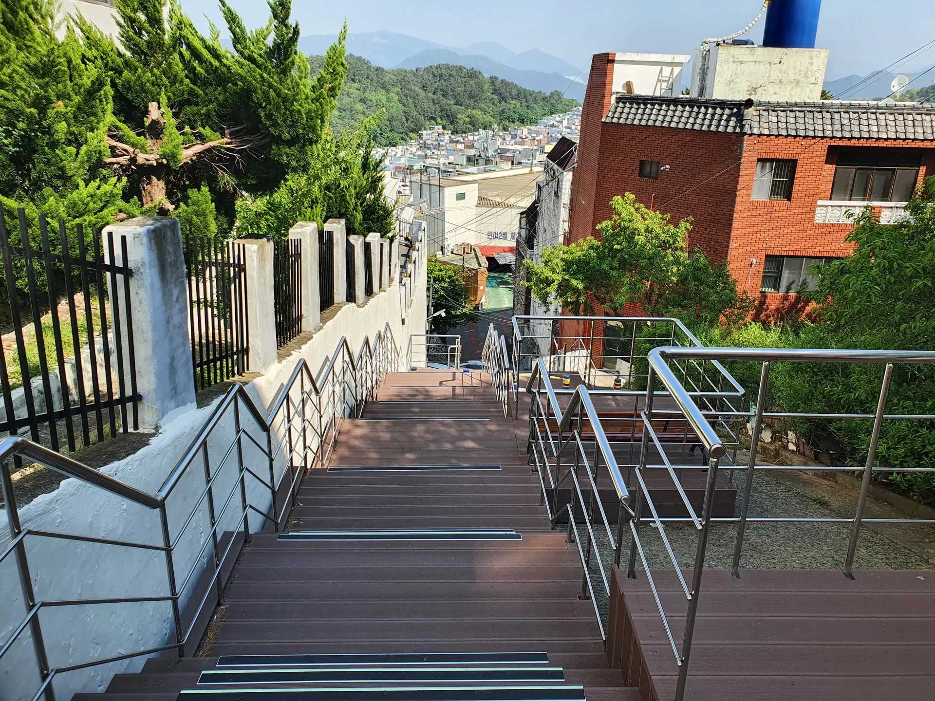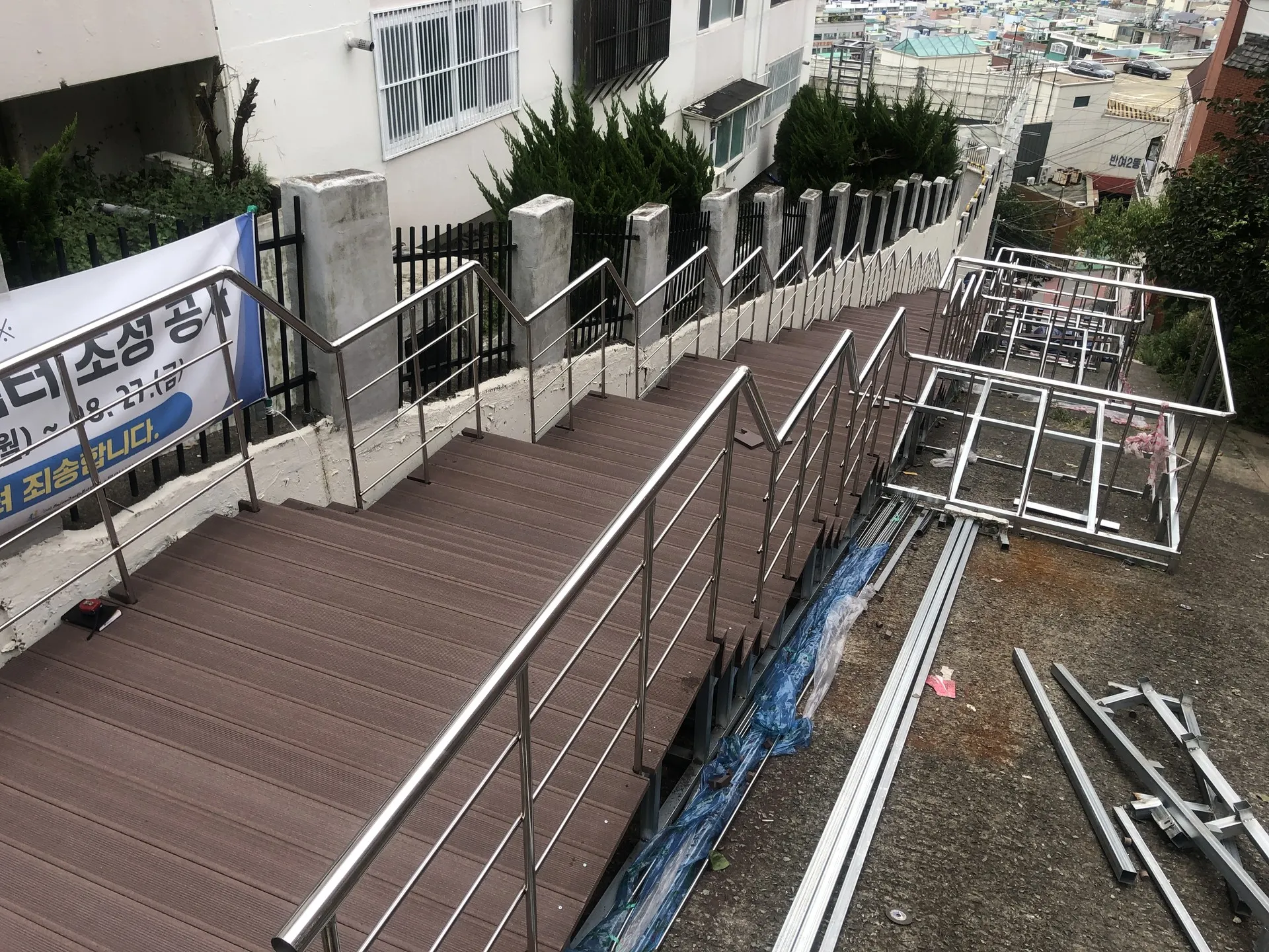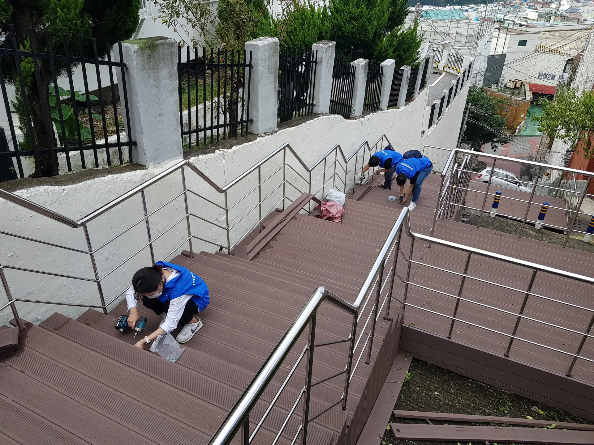 오르막길이 많아 우천 시 미끄러워 위험성이 높은 재송동 오르막길에 약 35m의 계단 쉼터를 설치.