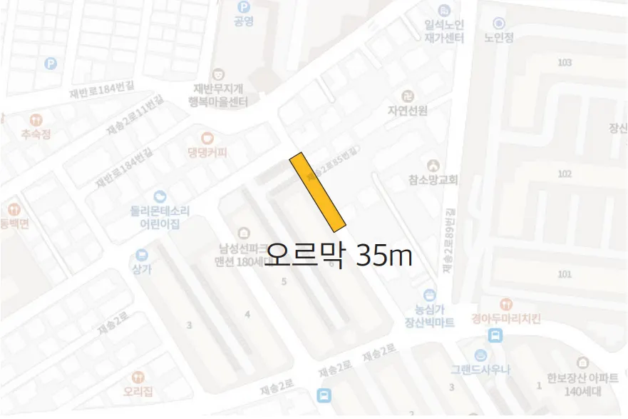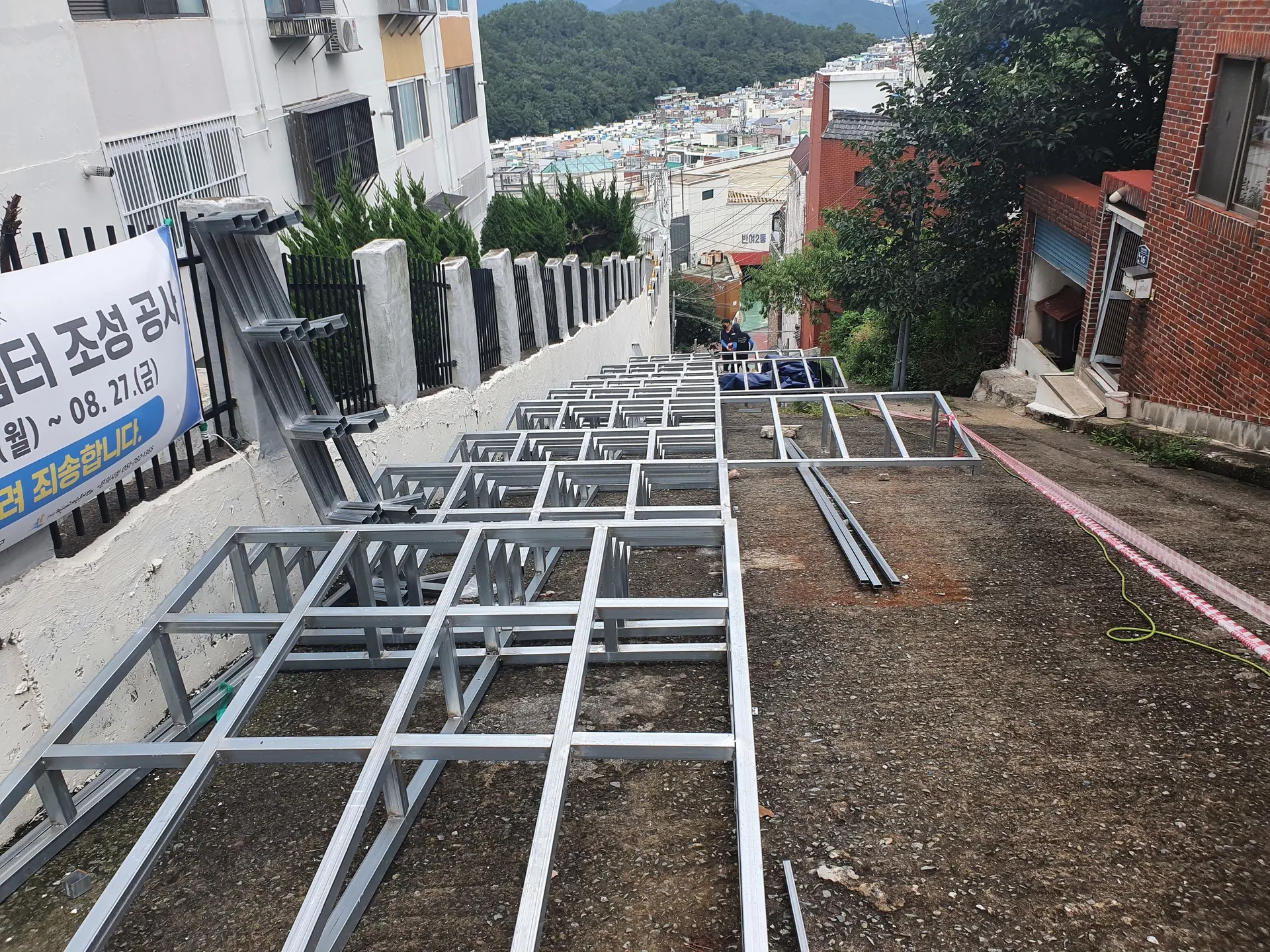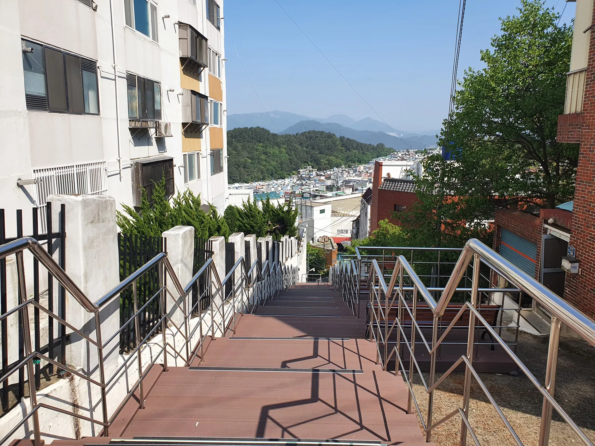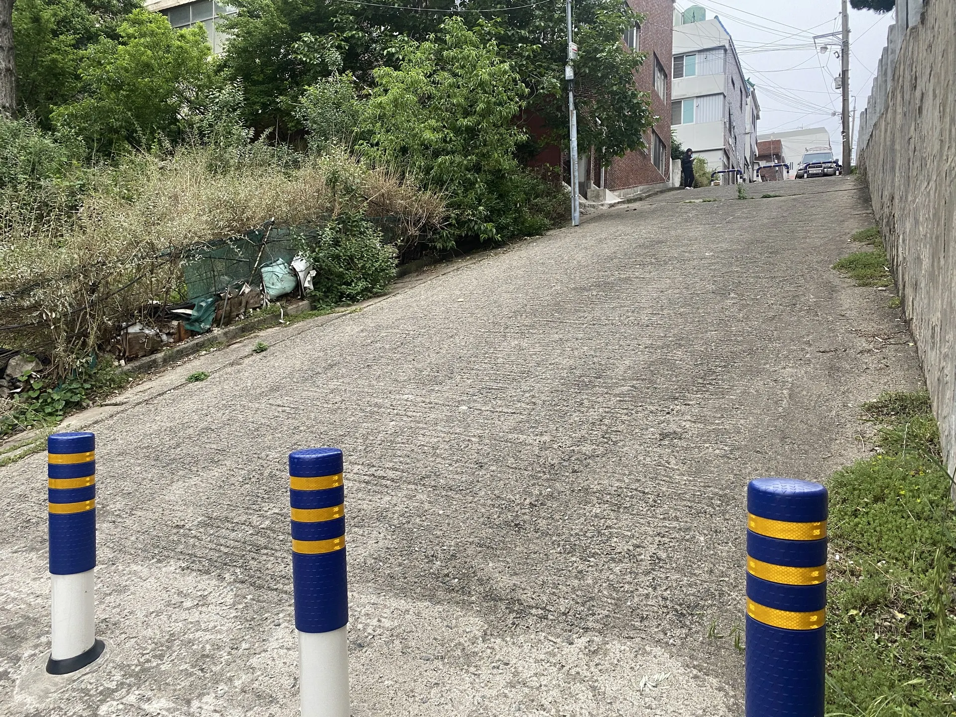 오르막길이 많아 우천 시 미끄러워 위험성이 높은 재송동 오르막길에 약 35m의 계단 쉼터를 설치.